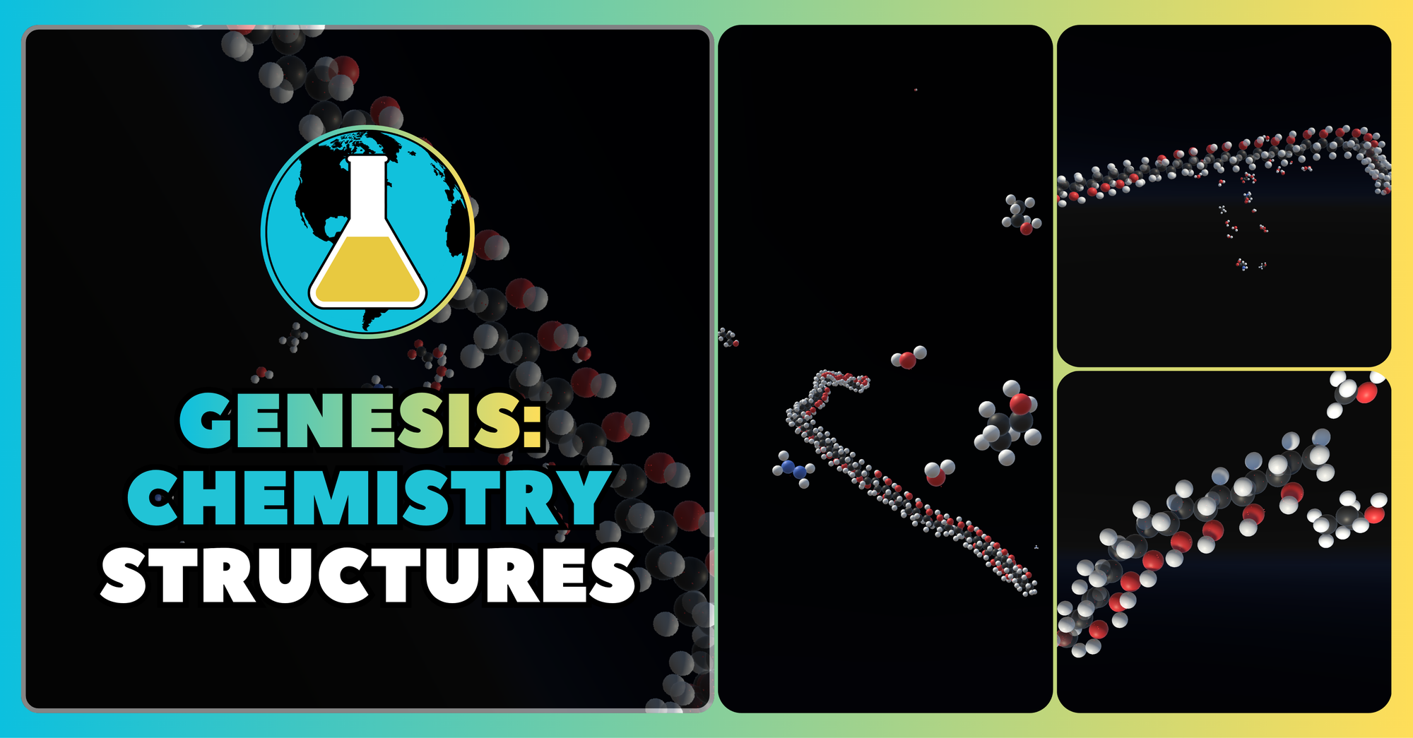 Dr. Rosa developed Genesis to spawn 3D structures programmed with chemistry-logic (e.g., electrostatics, thermodynamics, geometry, valence) and their resulting interactions in real time. This enables consistent, repeatable user-directed behaviors, allowing learners or collaborators to explore and interact with mechanisms in real time.