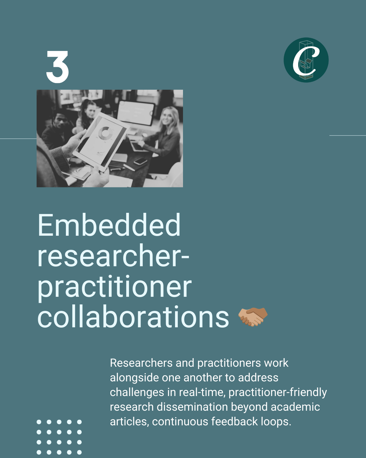 3️⃣ Embedded researcher-practitioner collaborations 🫱🏽🫲🏾