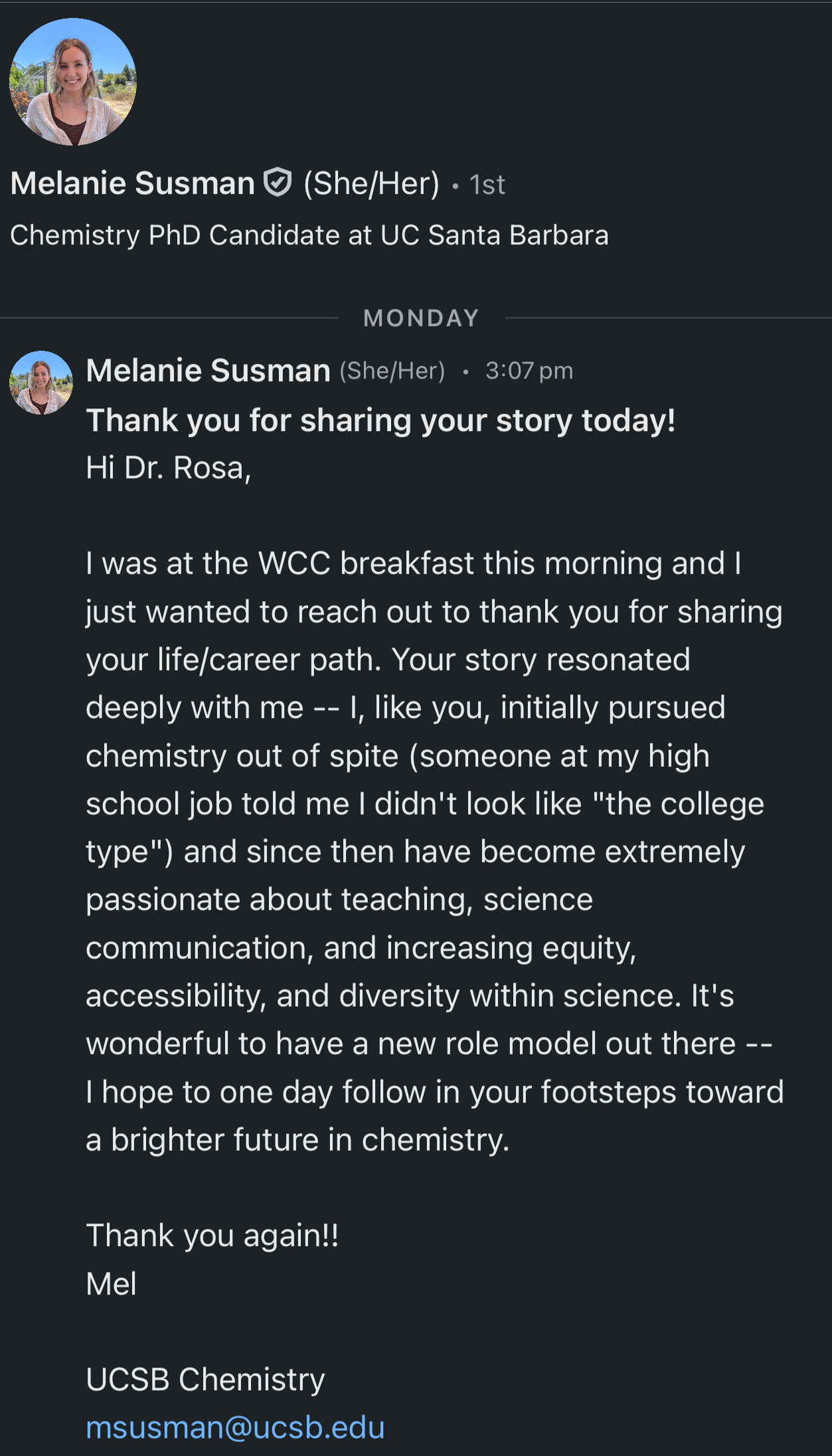 You'd think that after earning a doctorate, these sorts of beliefs would go away. But I discovered a new one when asked to be the featured speaker at the 2025 ACS San Diego Women in Chemistry Enterprise Breakfast:
