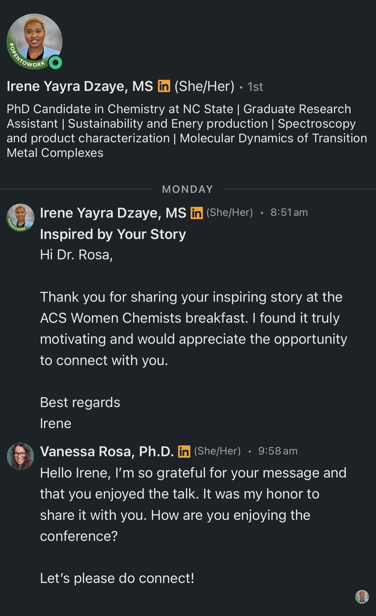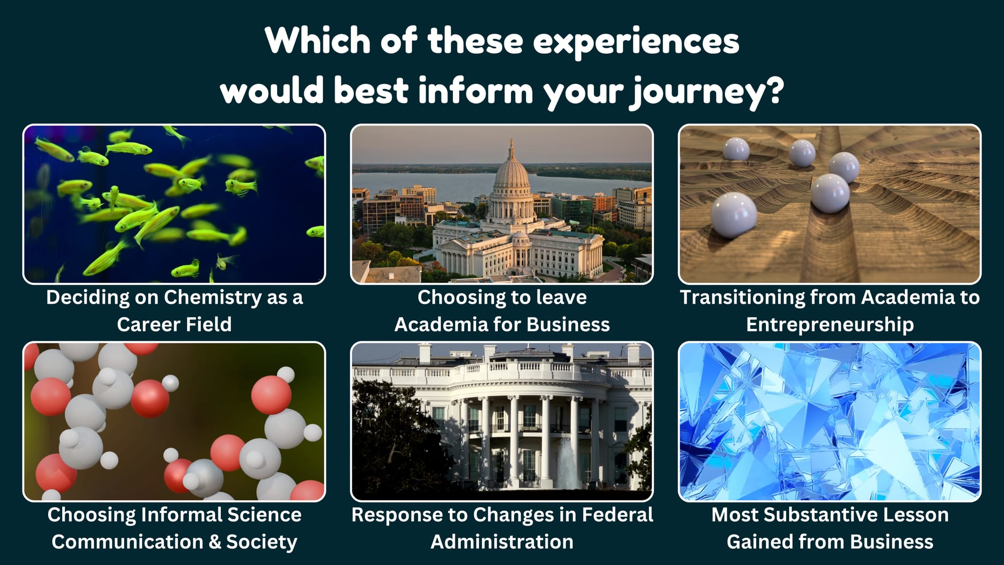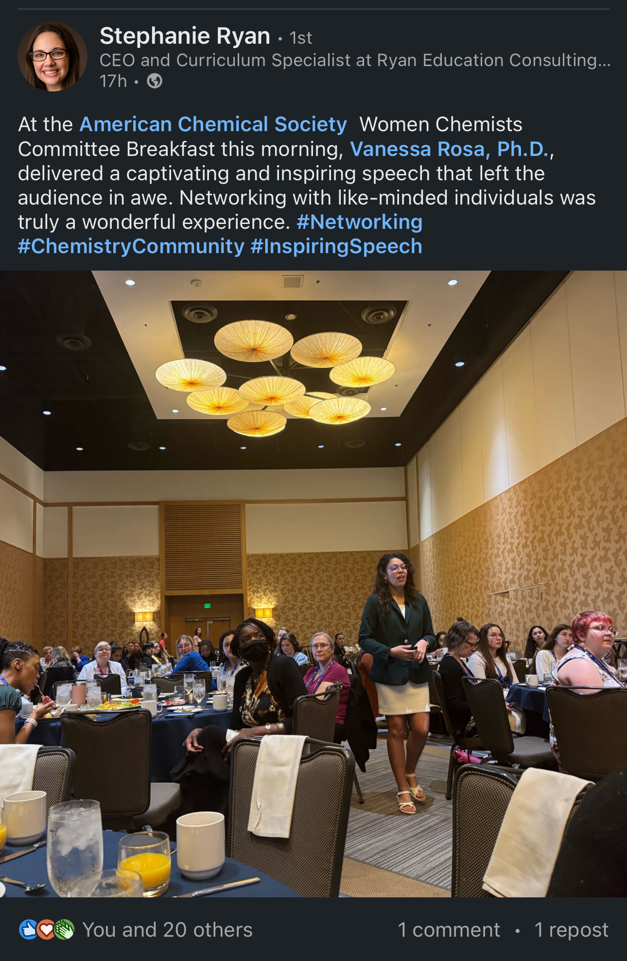 We were disappointed that you were unable to meet with us at ACS Fall 2024 meeting in Denver. After hearing about your story, we would like to try again... As both an entrepreneur and chemical educator with a unique life and career path, you can present your perspective which will be of great interest to all the breakfast attendants, many of whom are students or still developing their career path.