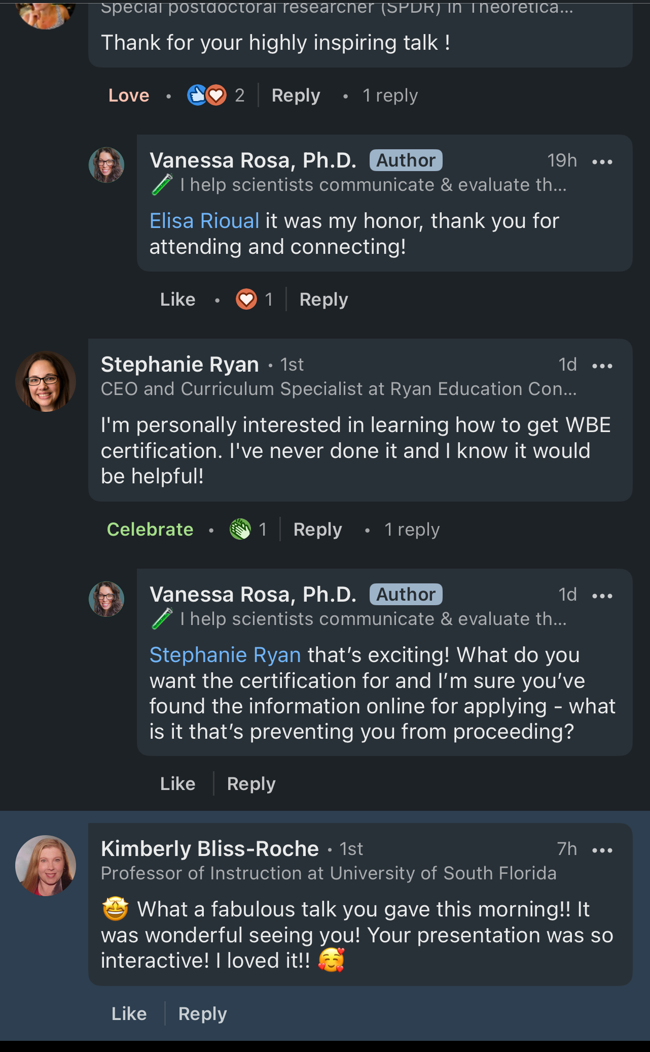 A few of the messages and support given after the WICE talk. So grateful for all of you!