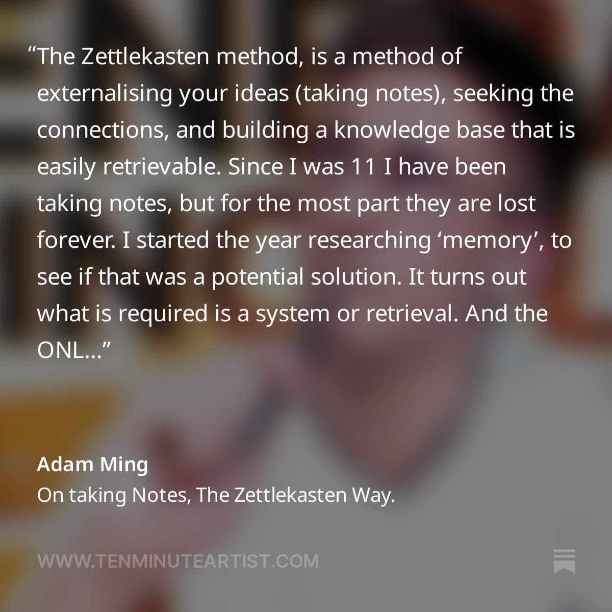 I just learned and tried a Zettelkasten ποΈ (or "note box"), designed to support knowledge building over note-taking.